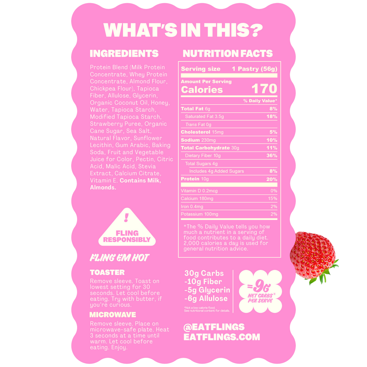 High Protein • Gluten Free • Excellent Source of Fiber • Artificial Sweetener Free • Seed Oil Free • Soy Free • Grain Free • Wheat Free